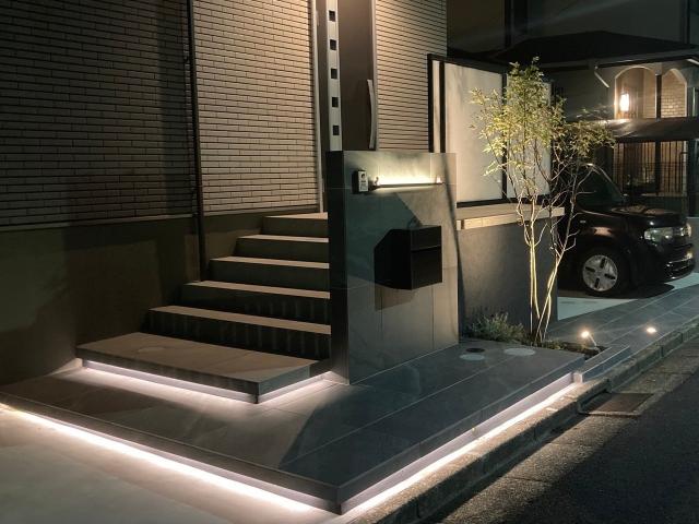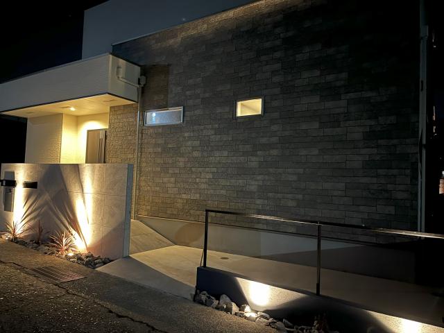 モダンなライトアップがカッコ良いモダン外構です。 |
