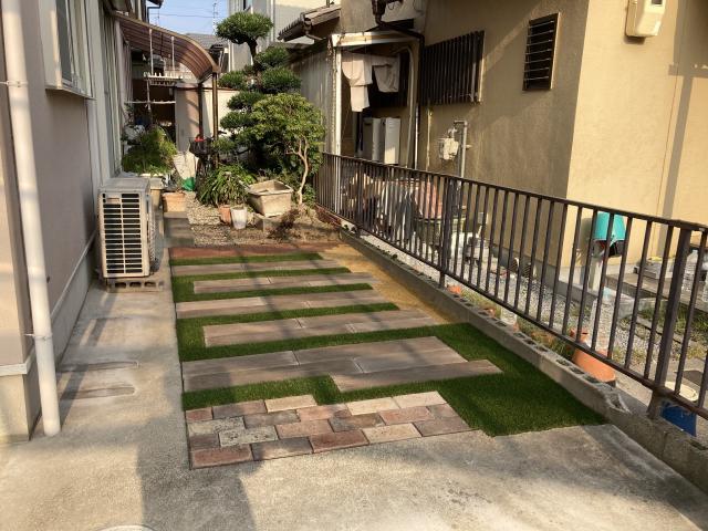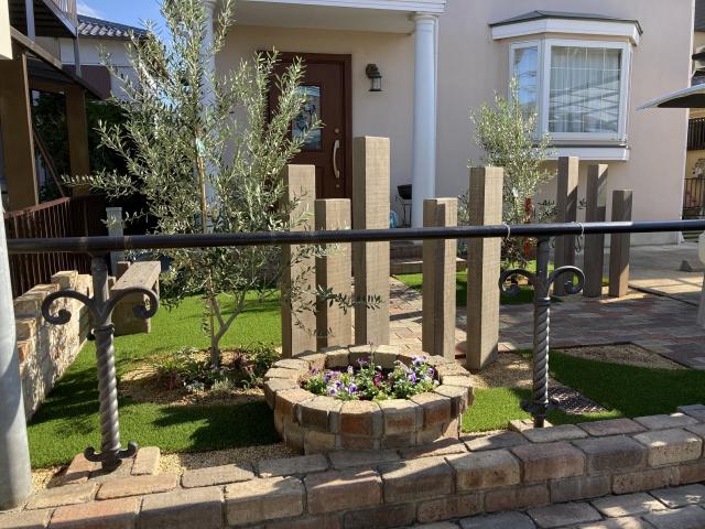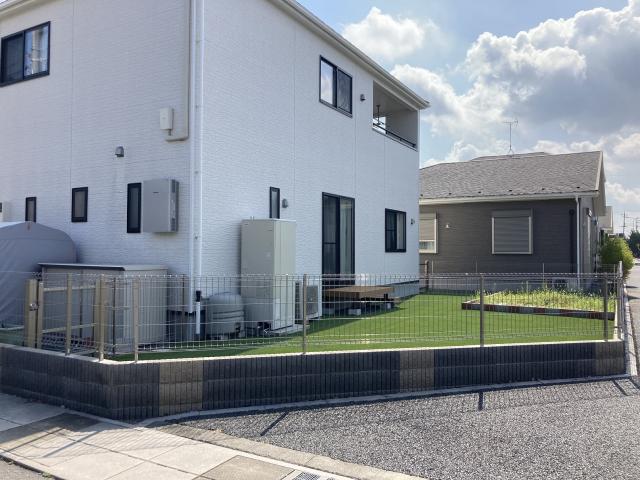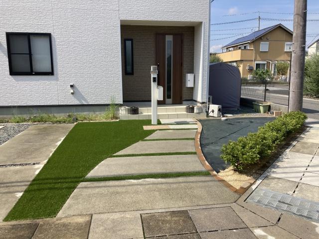 雑草対策をしながらも、人工芝や植栽スペースを取り入れることで緑を感じられるお庭に仕上げました。